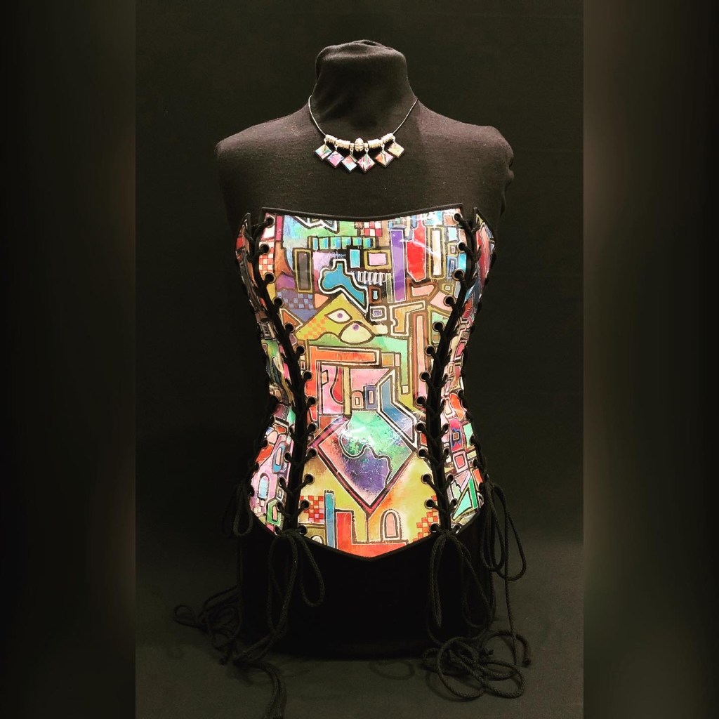 Eco-artist and sustainable fashion designer Phia creates inspirational eco-art and apparel using only sustainable, recycled, foraged, and waste materials in each individually designed garment/piece she produces from her open studio/gallery in Bangor, North Wales.