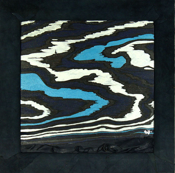 Remnants of Acrylic paint on recycled wood with frame made from recycled timber and suede